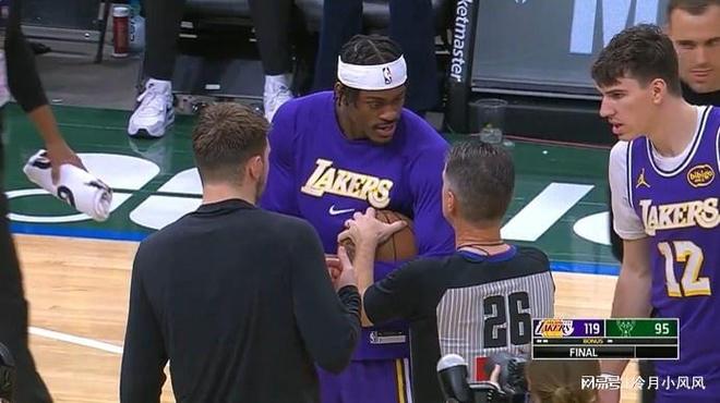 在昨日湖人战胜雄鹿赛后,发生了一段颇有意思的小插曲。为了把比赛用球给本场迎来生涯首秀的湖人新秀蒂耶罗,湖人前锋范德比尔特在哨响后第一时间拿到了球,但是却被主裁判强行夺走并交给了雄鹿的工作人员。这个突发情况引得了湖人范德比尔特、里夫斯、克内克特和东契奇的不满,轮番与裁判进行理论。眼见一切僵局,雄鹿当家球星字母哥体现了胸襟和担当,上前拿过用球递给了东契奇,随后东契奇转交给了蒂耶罗。尽管插曲结束,但是范德比尔特仍旧非常生气,在赛后采访环节表示裁判滥用全力。